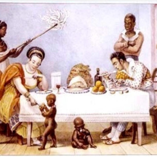 À mesa, então, a incivilidade dos brasileiros imperava. O pintor Jean Baptiste Debret, que chegou ao Brasil com a Missão Artística Francesa em 1816 e que retratou a vida dos brasileiros, ficou escandalizado com a falta de educação dos ricos durante as refeições. “O dono da casa come com os cotovelos fincados na mesa; a mulher, com o prato sobre os joelhos, sentada na sua marquesa, à moda asiática; e as crianças, deitadas ou de cócoras nas esteiras, lambuzam-se à vontade com a pasta de comida nas mãos (...) As mulheres e crianças não usam colheres nem garfos; comem todos com os dedos”, registrou o pintor.